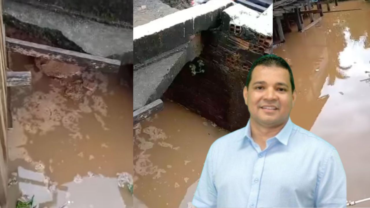 Vídeos gravados pelos próprios moradores mostram esgoto acumulado, água tomando conta das vias e riscos reais de desabamentos.