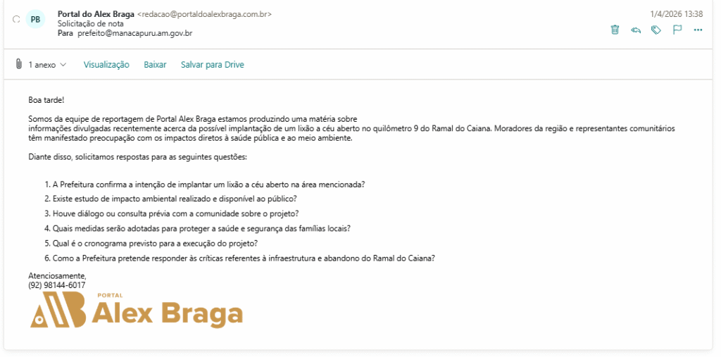 O Núcleo de Reportagem Investigativa do Portal Alex Braga tentou contato com a Prefeitura de Manacapuru pedindo esclarecimentos sobre o caso. Contudo, até a publicação desta matéria, não obtivemos retorno. O espaço segue aberto para mais esclarecimentos.